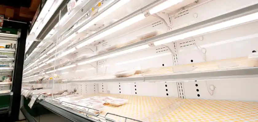 スーパーやコンビニでは営業をできない店舗が増えていき、営業していてもほとんどの商品が売り切れている状態となります。